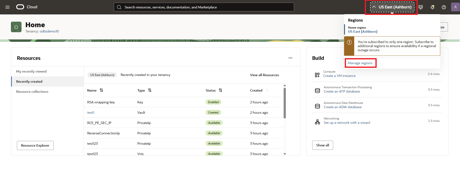 To subscribe to an OCI region in the OCI Console